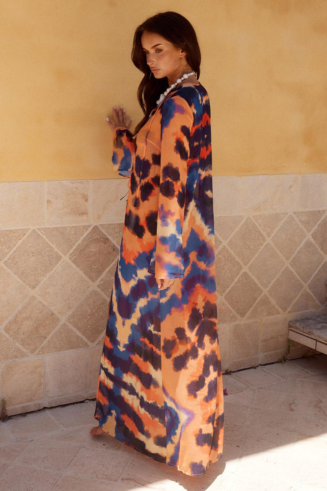 Get ready to slay the beach game with our Velzy Cover Up, featuring a fierce saber print that will make you stand out. Made with flowy fabric, it's the perfect way to cover up while still looking stylish. Complete the look with our Malakai One-Piece in Saber Print! Say goodbye to boring cover ups and hello to beach fashion!