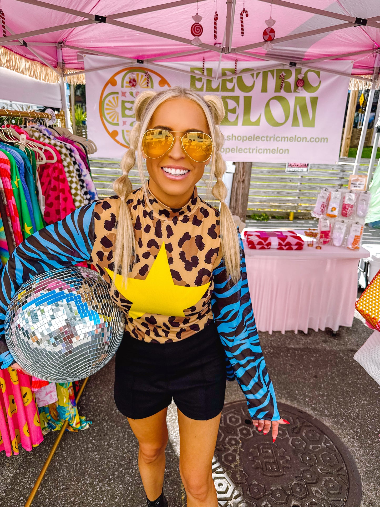 - Zebra print mesh bell sleeves
