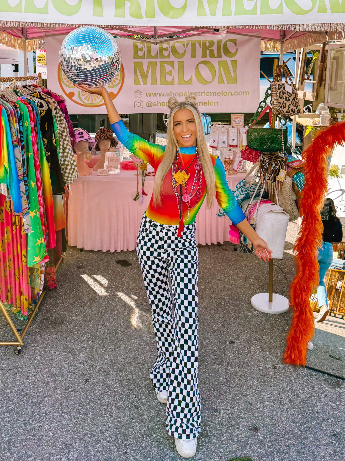 Make a statement with this eye-catching mesh top featuring a vibrant rainbow heat wave design that shifts across the fabric like pure energy. The breathable mesh construction keeps you cool while the bold, dynamic pattern turns heads wherever you go. Long sleeves offer versatile coverage for layering or standalone wear. Perfect for anyone who loves to express their personality through fashion with a touch of electric flair. Lightweight, comfortable, and undeniably fun.